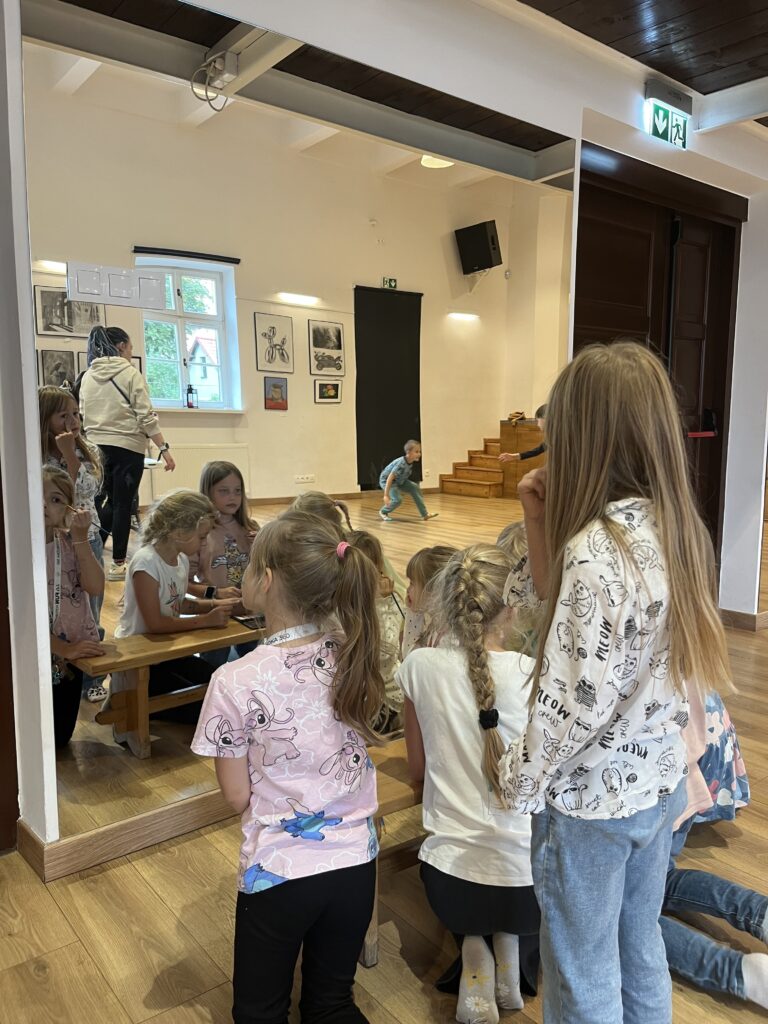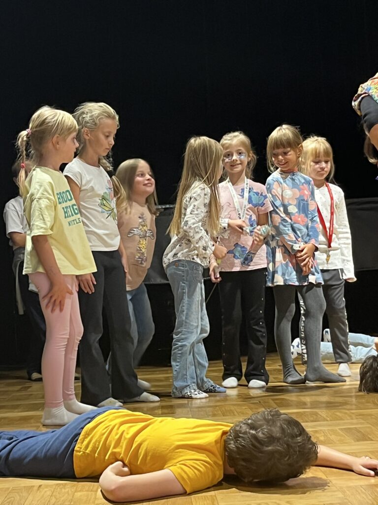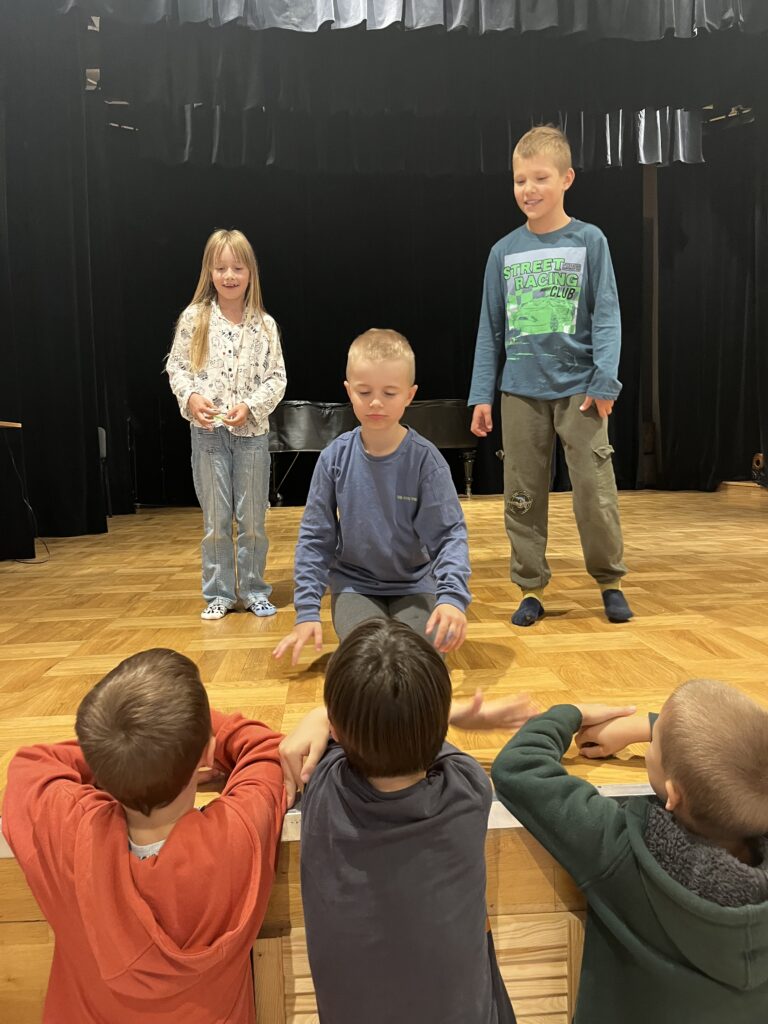 Improwizacje aktorskie: Dzieci miały za zadanie improwizować sceny z ulubionych filmów, bajek lub seriali, używając jedynie ruchu. Pozostali uczestnicy musieli odgadnąć tytuł produkcji, co było świetną zabawą i ćwiczeniem na spostrzegawczość.