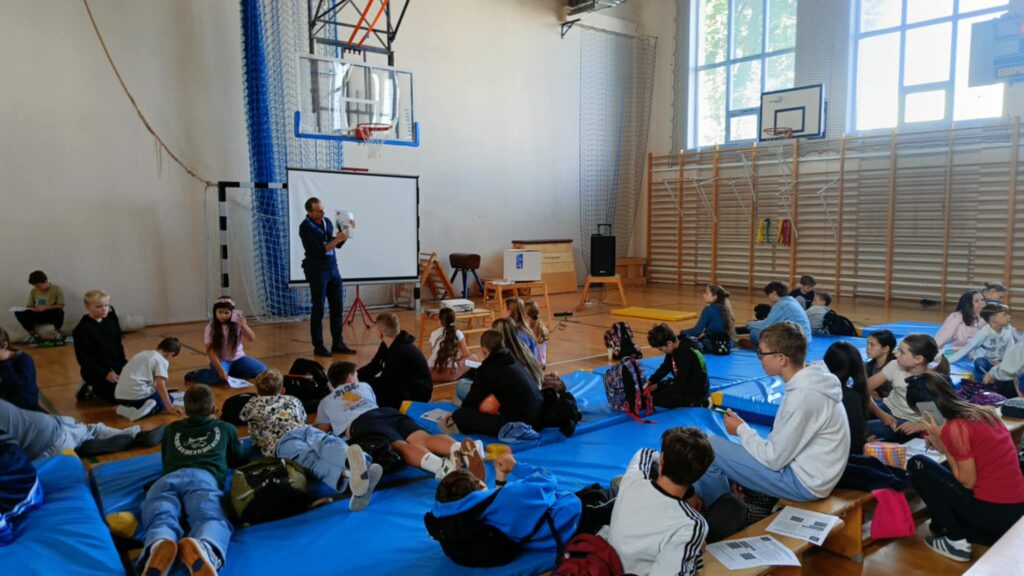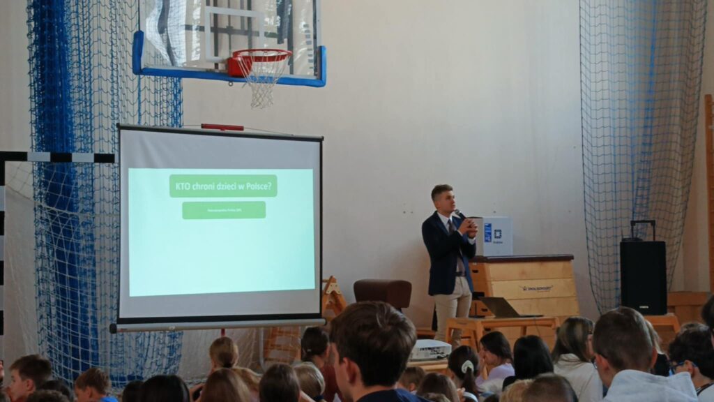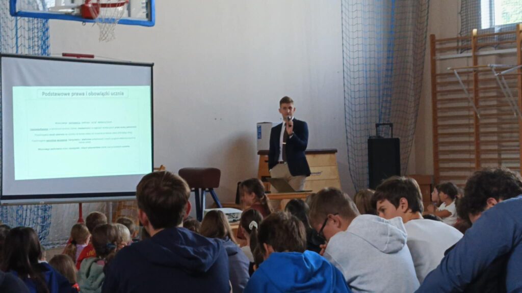 Dnia 24 września 2025 r. naszą szkołę odwiedził jej absolwent – Jakub Tomasiewicz, obecnie student prawa. Wygłosił on niezwykle ciekawą prelekcję dla uczniów klas IV–VIII na temat praw i obowiązków dzieci. Podczas spotkania podzielił się również licznymi anegdotami, które w przystępny i interesujący sposób przybliżyły uczniom zagadnienia związane z prawem. Było to inspirujące spotkanie, które pokazało, że wiedza zdobywana w szkole stanowi solidny fundament do dalszego rozwoju i realizacji pasji.