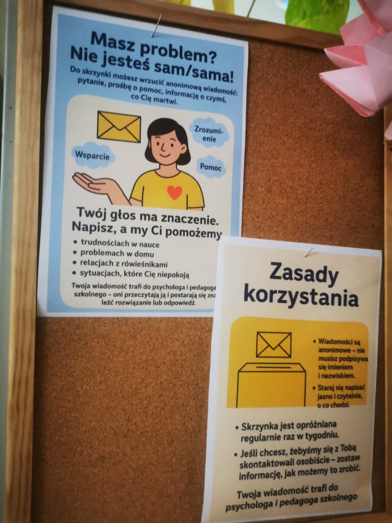 Na terenie szkoły uruchomiono specjalną skrzynkę do anonimowego kontaktu ze specjalistami.