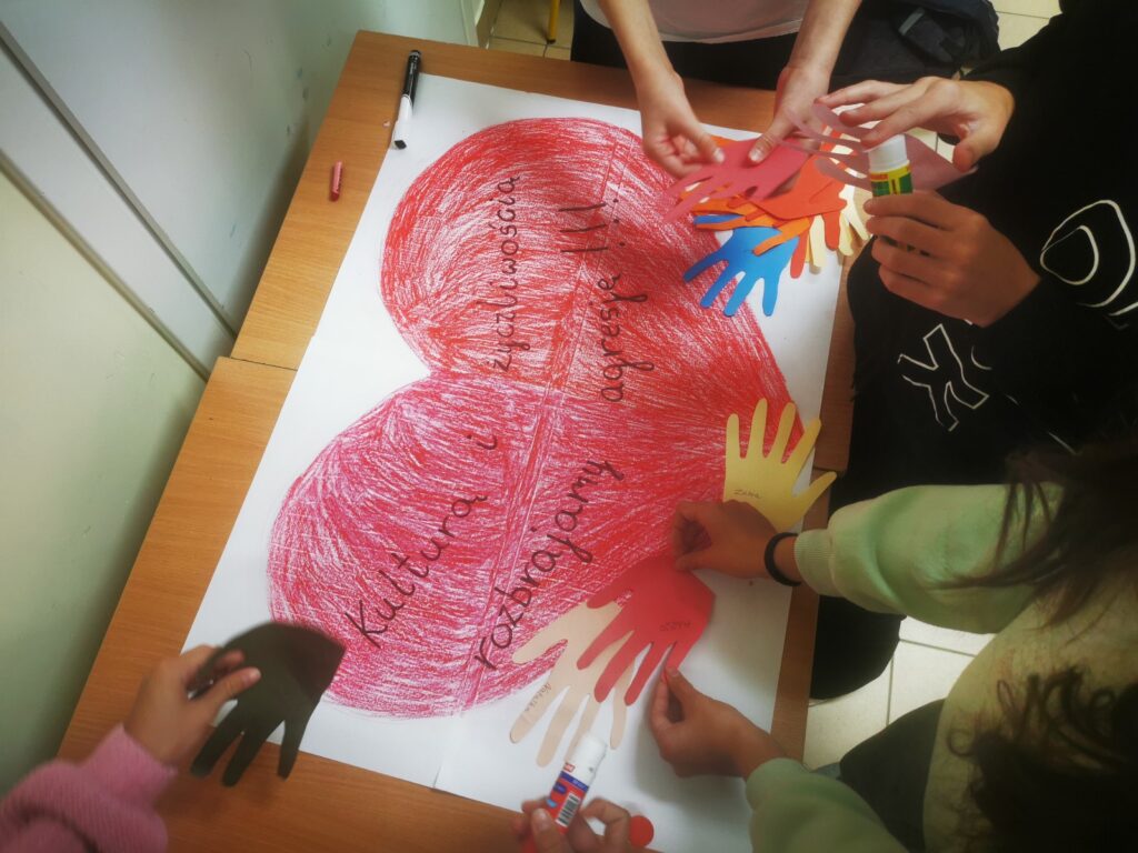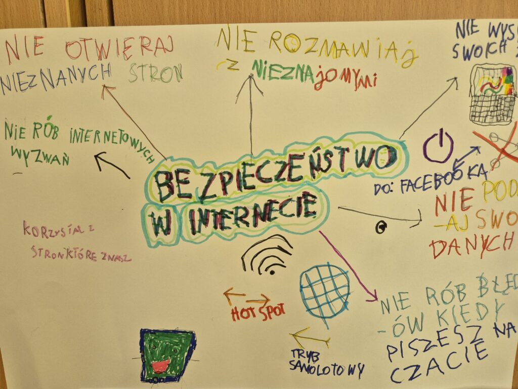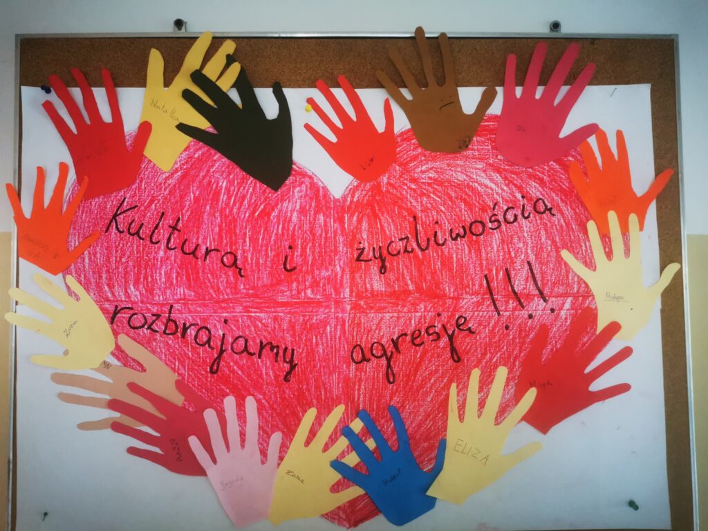 W poszczególnych klasach oraz świetlicy powstawały plakaty i gazetki ścienne promujące hasła przeciwdziałania przemocy, bezpieczeństwa w sieci oraz zasad umożliwiających funkcjonowanie w atmosferze wzajemnego szacunku.