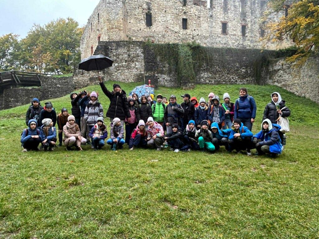 Kolejnym, niezwykle interesującym punktem programu, było zwiedzanie średniowiecznego Zamku Lipowiec. Położony na wzgórzu ponad Grzbietem Tenczyńskim, zamek urzekł uczestników nie tylko swoim majestatycznym wyglądem, ale także bogatą historią. Przewodnik opowiadał o dawnych właścicielach, dziejach zamku oraz jego znaczeniu w historii Małopolski, co spotkało się z dużym zainteresowaniem ze strony uczniów.