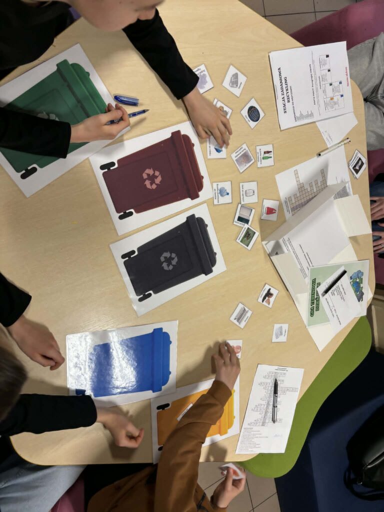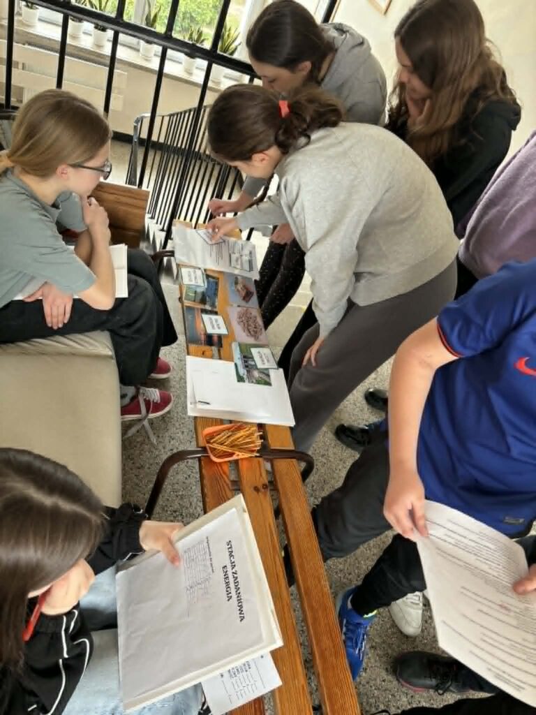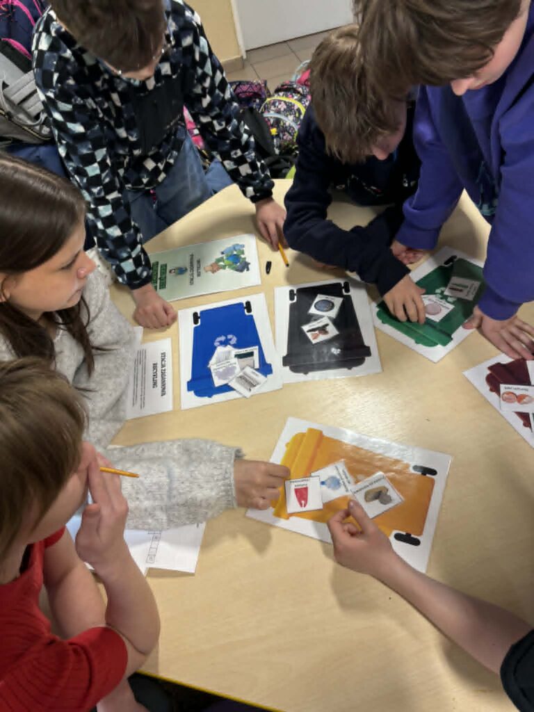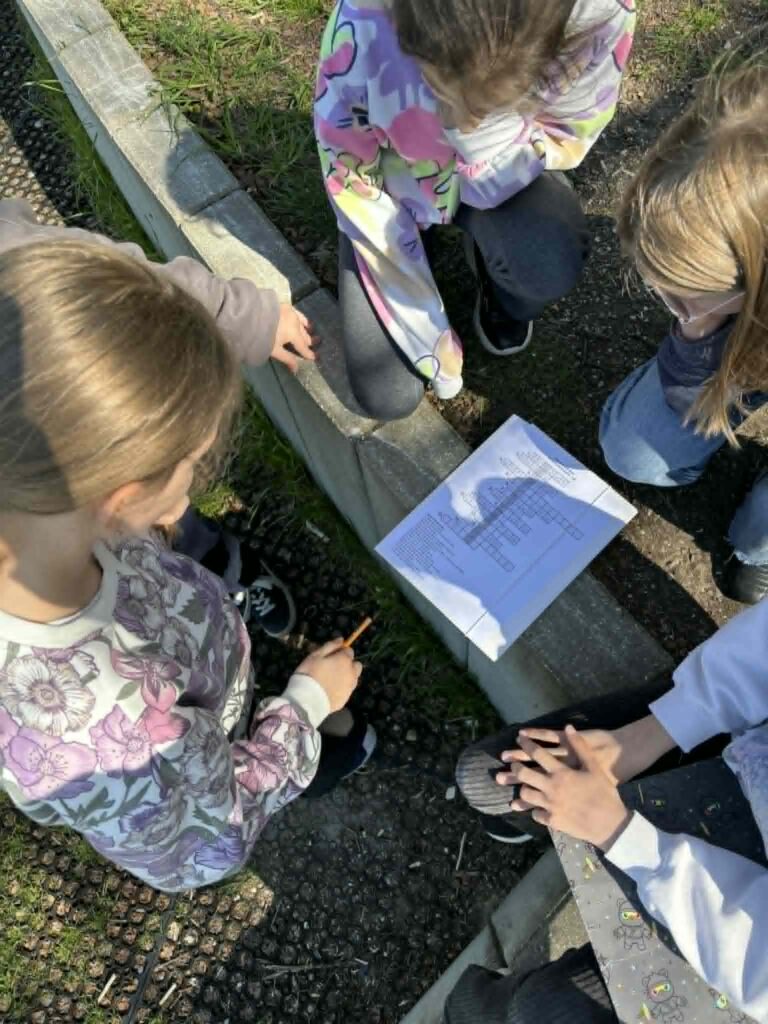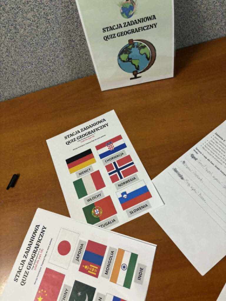 W dniach 20–24 kwietnia w naszej szkole odbyła się gra terenowa dla uczniów klas 5–6 z okazji Dnia Ziemi. Była to wyjątkowa inicjatywa, która połączyła naukę z aktywnością ruchową, współpracą i dobrą zabawą. Na uczestników czekały różnorodne stacje zadaniowe. Uczniowie mierzyli się m.in. z zadaniami dotyczącymi recyklingu – rozwiązywali krzyżówki oraz segregowali odpady do odpowiednich pojemników. Na kolejnych stanowiskach sprawdzali swoją wiedzę w quizie geograficznym, poznawali zagadnienia związane z wodą i jej zużyciem w codziennych czynnościach, a także zgłębiali temat energii przyszłości i odnawialnych źródeł energii poprzez interaktywne quizy. Uczniowie pracowali w zespołach, przemieszczając się między stacjami i wspólnie rozwiązując przygotowane zadania. Taka forma pracy sprzyjała integracji oraz rozwijaniu umiejętności współpracy w grupie. Głównym celem gry było rozwijanie świadomości ekologicznej uczniów, utrwalenie wiedzy geograficznej oraz pokazanie, że nauka może być ciekawa i angażująca. Wydarzenie spotkało się z dużym zainteresowaniem i zaangażowaniem uczestników, a zdobyta wiedza z pewnością przyczyni się do bardziej świadomego dbania o środowisko naturalne.
