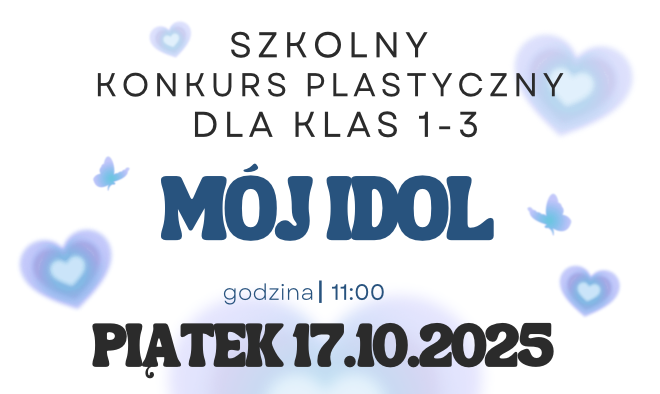 Serdecznie zapraszamy dzieci z klas 1-3 do udziału w szkolnym konkursie plastycznym pt. „Mój idol”. Jest to prawdziwy test dziecięcych umiejętności artystycznych, bowiem zadanie konkursowe polega na wykonaniu pracy plastycznej (forma płaska, nie przestrzenna) w szkole, na temat podany w tytule konkursu, w określonym czasie (60 minut) z przyniesionych własnych materiałów (zalecane: farby, kredki, flamastry […]